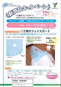 ①三角穴フェイスガード・・・水しぶきや切削片から患者様の顔を保護します