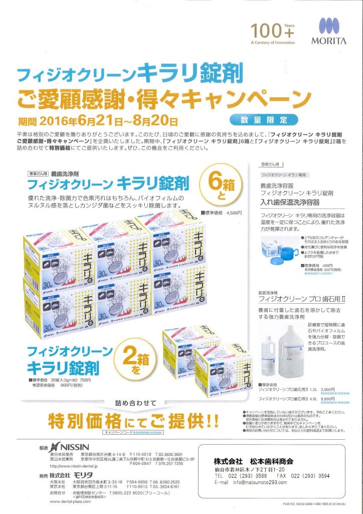 ≪フィジオクリーンキラリ錠剤 ご愛顧感謝・得々キャンペーン≫ (株)ニッシン