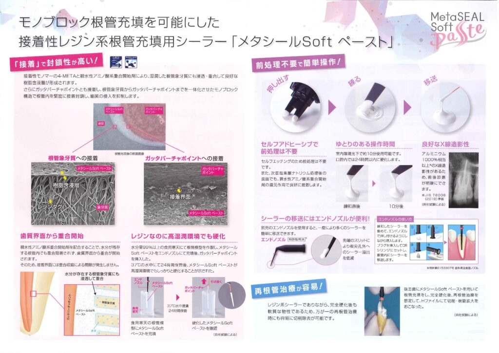 レジン系シーラーでありながら、完全硬化後も軟質な物性であるため、万が一の再根管治療時にも容易に切削除去が可能です。
